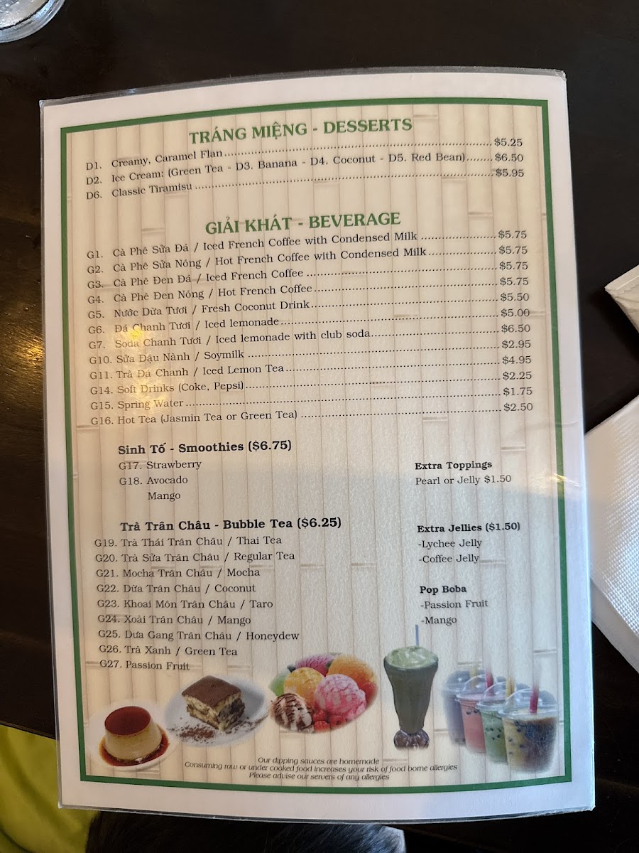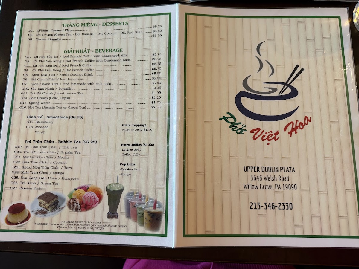 Pho Viet Hoa, where every dish is a delightful homage to the rich culinary traditions of Vietnam! Nestled at 3646 Welsh Rd, Willow Grove, PA, our menu boasts an array of specialties that are sure to tantalize your taste buds. Start your journey with our Fresh Basil Bean Sprouts Jalapenos paired with a refreshing Summer Roll, or treat yourself to the exquisite flavors of our Seafood Birdsnest. If you’re craving something heartier, our Pho Without Meat and Banh Mi - Grilled Pork Sandwich are must-tries! Don’t forget to indulge in our creamy Caramel Flan or savor a scoop of our Red Bean Ice Cream to sweeten your experience. Whether you’re drawn in by the aromatic Vietnamese Iced Coffee or the unique warmth of our Sautéed Chicken with Broccoli, there’s something for everyone at Pho Viet Hoa. Join us for an unforgettable dining adventure!
